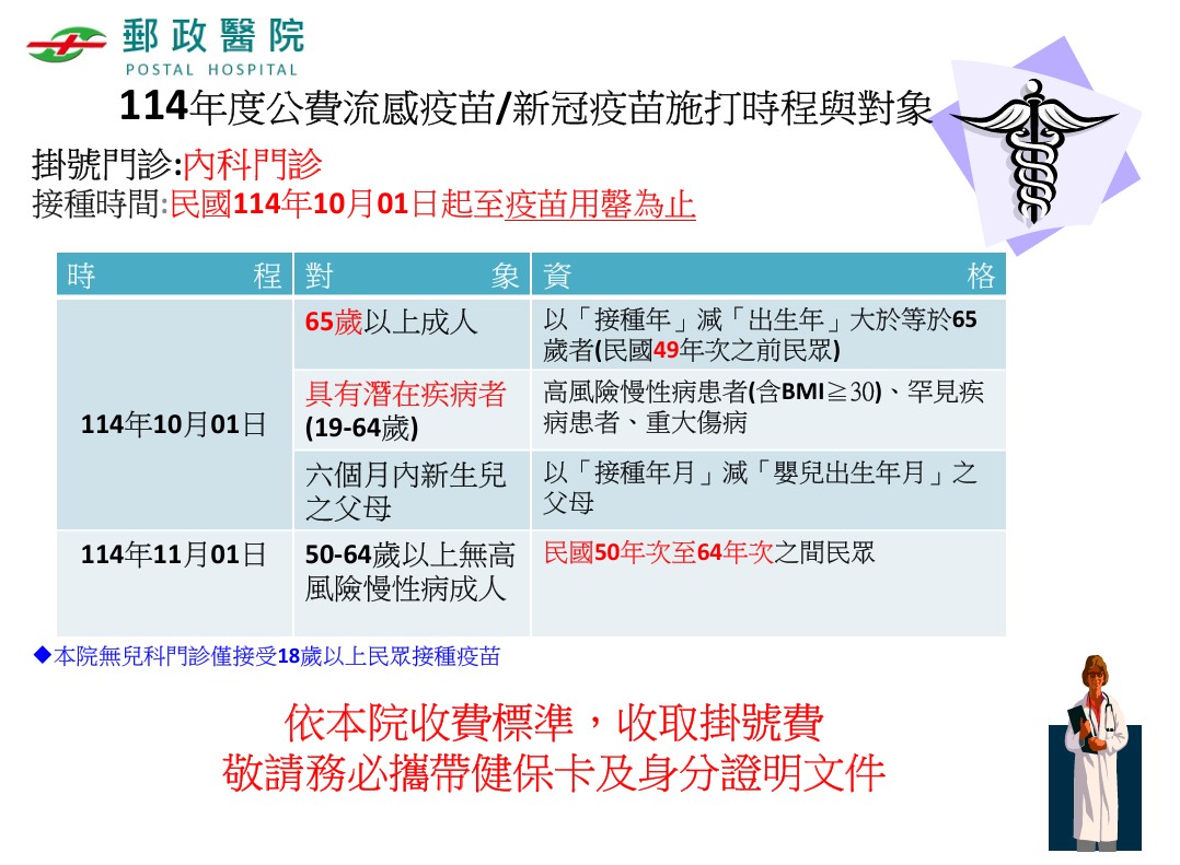 本院自費流感疫苗已售罄,若您符合公費接種資格,歡迎在本院施打